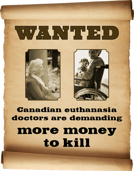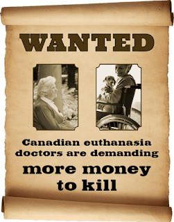 • Canadian euthanasia doctors are pressuring the provincial governments to pay them more money for euthanasia. Supposedly, some euthanasia doctors have stopped killing people based on money.